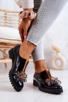 Damen Lackleder Halbschuhe Mit Verzierungen D&A MR880-103 Schwarz
