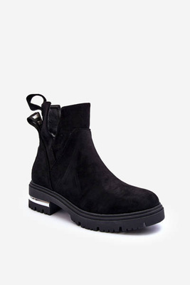 Lederstiefeletten Botki Mit Massiver Flacher Ferse Schwarz Keva