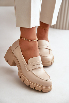 Damen Halbschuhe Mit Niedrigem Absatz Aus Eko Leder Beige Menloa