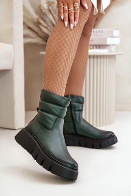 Damen Leder Stiefeletten Mit Reißverschluss Gefüttert Mit Filz Dunkelgrün Zazoo 60512