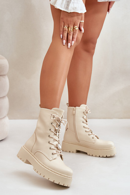 Wärmende Stiefel Worker Damen Mit Akzenten Beige Avorira
