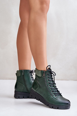 Leichte Gefütterte Damenstiefeletten Auf Plattform Und Keil Dunkelgrün Savindria