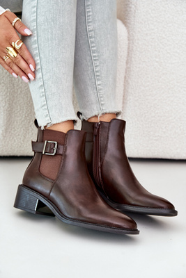 Damen Stiefeletten Mit Niedrigem Absatz Und Goldener Schnalle Braune Vomera