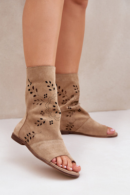 Zazoo 3437 Damen Wildleder Sandalen Mit Reißverschluss Beige