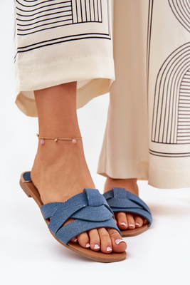 Flache Damensandalen Mit Verflochtenen Riemen Jeans Selaenor