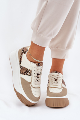 Damen Sneakers Auf Massiver Plattform Tiermuster Beige Telanila