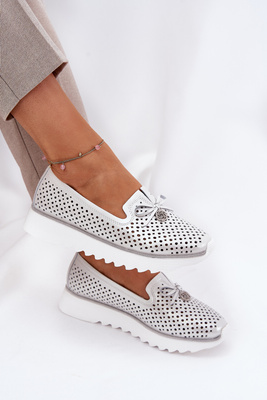 Damen Leder Ajourierte Halbschuhe Aus Naturleder D&A LR51-631 Silber