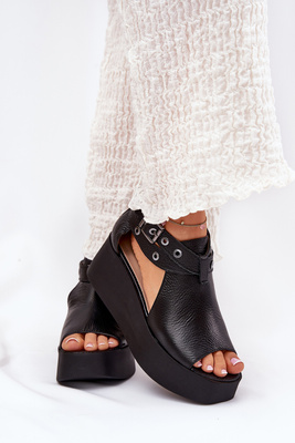 Leder Wedgesandalen schwarz Zazoo 1732