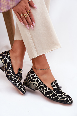 Wildleder Halbschuhe Mokassins Damen Mit Dekoration D&A LZ51-505 Schwarz-Gold