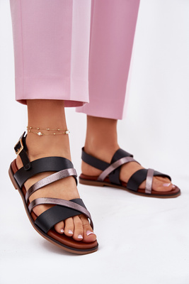 Damen Sandalen Mit Flachem Absatz Und Riemen Schwarz Sergio Leone SK086H