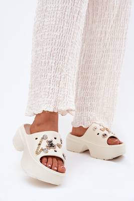 Schaum Damenpantoletten auf einer massiven Plattform mit goldenen Akzenten ecru Ivoriel