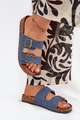 Damen Pantoletten Auf Korkplattform Mit Schnallen Dunkel Jeans Vesina