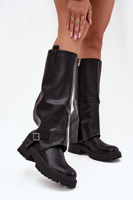 Gefütterte Stiefel mit umgeschlagenem Schaft und Schnalle schwarz Fiorae