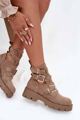 Damenturnschuhe mit Riemen und silbernen Klammern Beige Helisse
