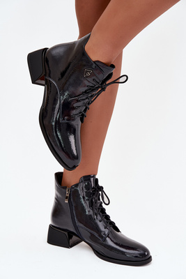 Lederlackierte Damenstiefeletten auf Keilabsatz Artiker 57C1117 Schwarz