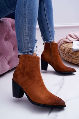 Damen Stiefel mit Absatz Leder Wildleder Cognac Nicole 2433