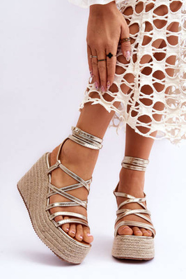 +4Klassische Keilsandalen aus Leder Gold Denisse