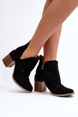 S.Barski HY66-135 Damen schwarze Lochmuster Stiefeletten mit flachem Absatz