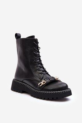 Damskie Botki Na Niskim Obcasie Sznurowane Czarne Adinail