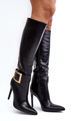 Damen-Stiefel Mit Schnalle Auf Spitz Schwarz Jesperassa