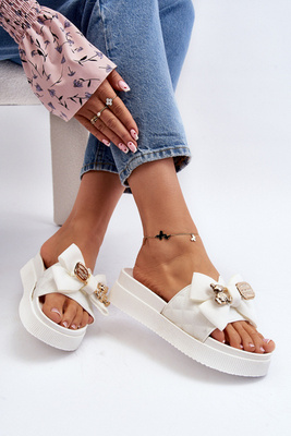 Damen Flip-Flops mit Schleife und Teddybär Weiß Katterina