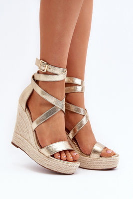 Sandalen auf Keilabsatz mit Flechtung Gold Salthe