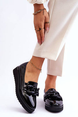Lackierte Loafer mit Keilabsatz und Kristallen schwarz Loresa