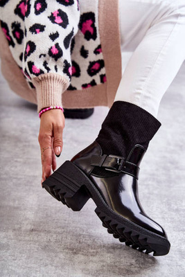 Lackierte warme Stiefel mit Strass Schwarze Gwen