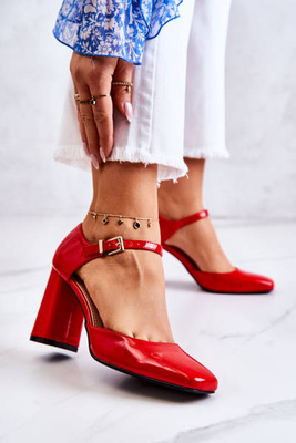 Modische lackierte Pumps auf einer roten Maori-Bar