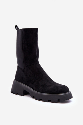 Zamsz-Stiefel Auf Einem Pfosten Schwarze Mellamene