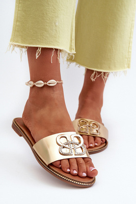 +3Damen Sandalen mit Eco-Leder Verzierung auf flachem Absatz Golden Sadria