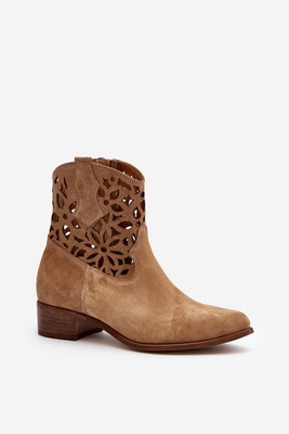 Durchbrochene Cowboy-Stiefeletten mit niedrigem Wildlederabsatz Zazoo 3404 Beige