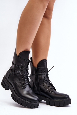 Verzierte Damen-Arbeitsstiefel Schwarz Vestara