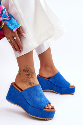 +5Damenhausschuhe auf massivem Plateau Blau Martina