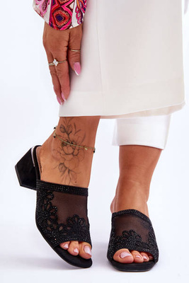 S.Barski Mesh-Hausschuhe mit Absatz KV-612-1 Schwarz