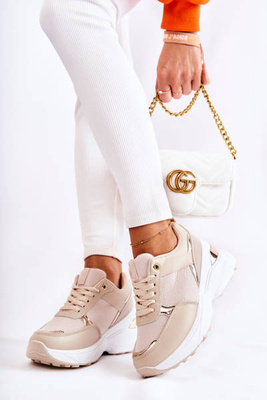 Glänzende Sportschuhe für Damen auf Keilabsatz Beige Aktivität