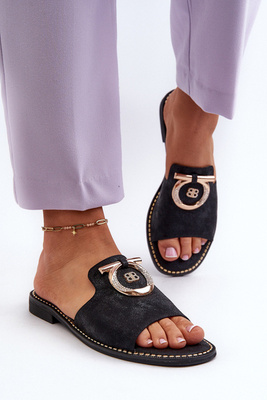 +2Elegante Glänzende Damen Hausschuhe mit Verzierung S.Barski KV27-032 Gold