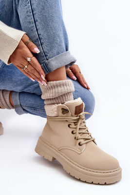 Damen Schnürstiefel Workery Mit Reißverschluss Hellbeige Ninsuni