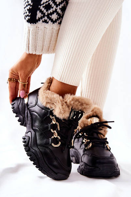 Fleecegefütterte Trapper-Stiefel Schwarz Demaris