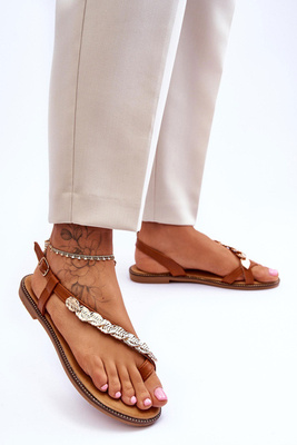 Damensandalen mit Ornamenten am Gürtel Kamel Alamis