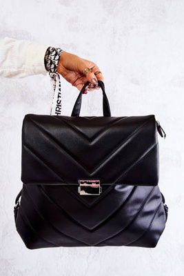 Lederrucksack mit Reißverschluss Schwarz Karlee