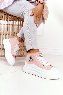 +9Damen Trissy Hohe Plateau Turnschuhe Beige/Weiß