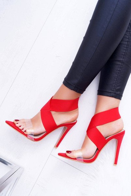 Damen Sandaletten mit breitem Riemen Rote Lichter
