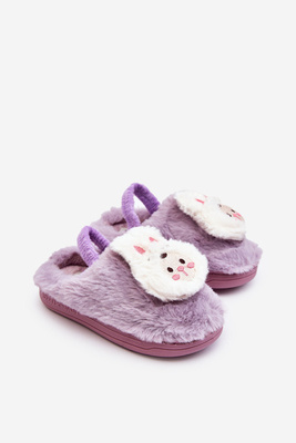 Kinderfellpantoffeln mit Hasenmotiv rosa Dicera