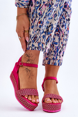 Gebundene Sandalen auf einem hohen Keil Fuchsie Lendy