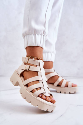 Ledersandalen mit hohem Absatz Laura Messi 2425 Beige