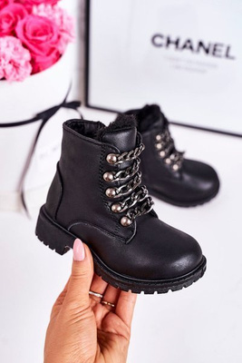 Children's Insulated Boots Eco Leather Chain Black Rock&Roll