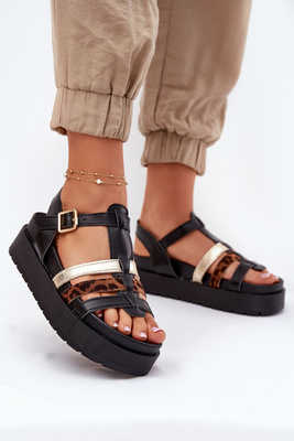 Women's Platform Slippers With Golden Buckles Black Zorila