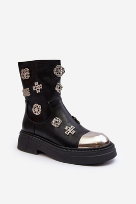 Leather Quilted Boots with Decorations D&A MR870-14 Black