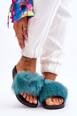 Women's Rubber Slippers With Fur Turquoise Lucrece